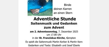 "Binde deinen Karren an einen Stern" Es spielt die Saitenmusik Martin Kerber & Martin Kern Gedanken und Texte: Elisabeth und Josef Eberle ...