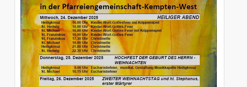 Mittwoch, 24. Dezember 2025 HEILIGER ABEND